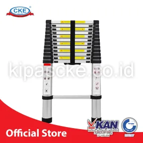 Spesifikasi : Height 410cm Folded dimension 52.5cm x 12.5cm x 92cm 14 Step Load Capacity 150kg Color Silver Aluminum 6063 Material Europe Standard - EN 131