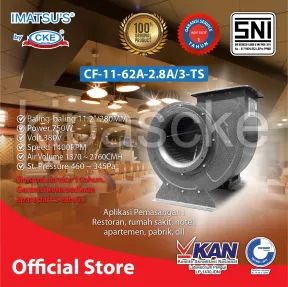 Centrifugal fan/ kipas sentrifugal/ blower keong/ blower fan merupakan kipas blower yang dirancang untuk mengalirkan udara pada suatu ruangan. Kipas ini mampu memperlancar sirkulasi udara suatu ruangan. Ideal digunakan di rumah makan dan bengkel sebagai alat ventilasi udara.
